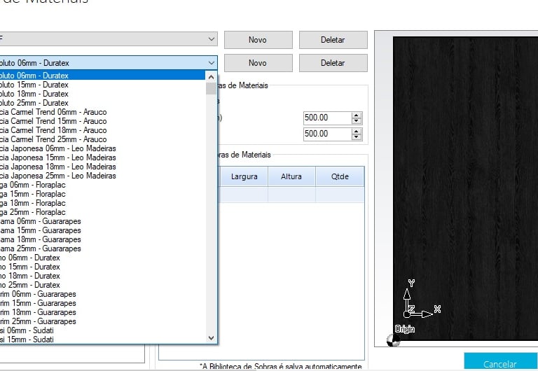 Todas as chapas de mercado já cadastradas e ilustradas com suas respectivas texturas. Isto facilita a gestão de sobras e estoque a cada liberação