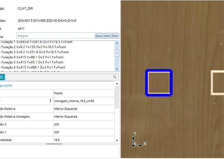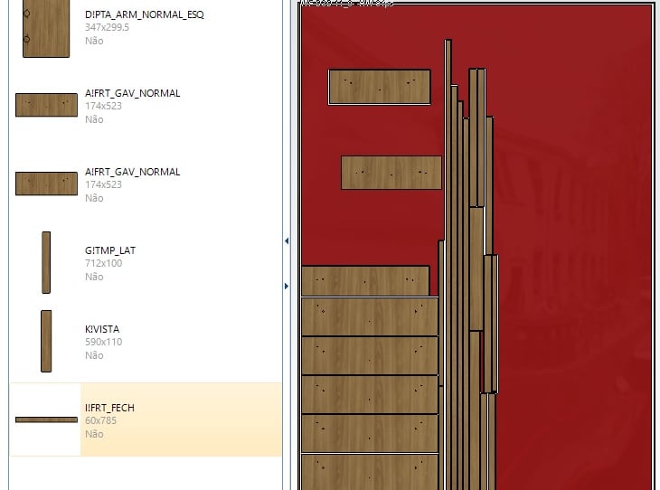 Ajustes manuais de posição de peças dentro de uma única chapa. Permitindo alinhamento de veios e aproveitamentos diferenciados